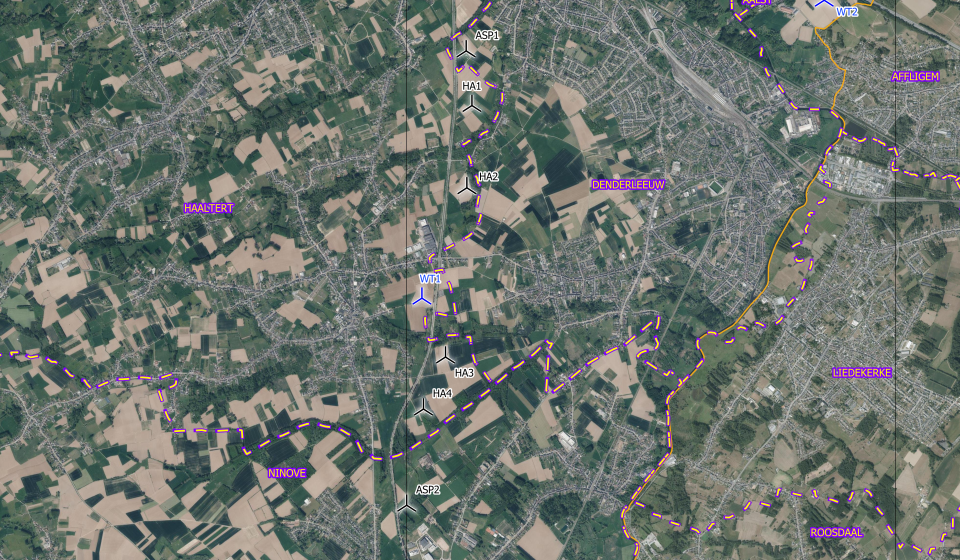 ENGIE souhaite réaliser une éolienne supplémentaire le long de la N45 à Denderhoutem, Haaltert. Ce projet complète la ligne d’éoliennes déjà existante le long de cette voie rapide.