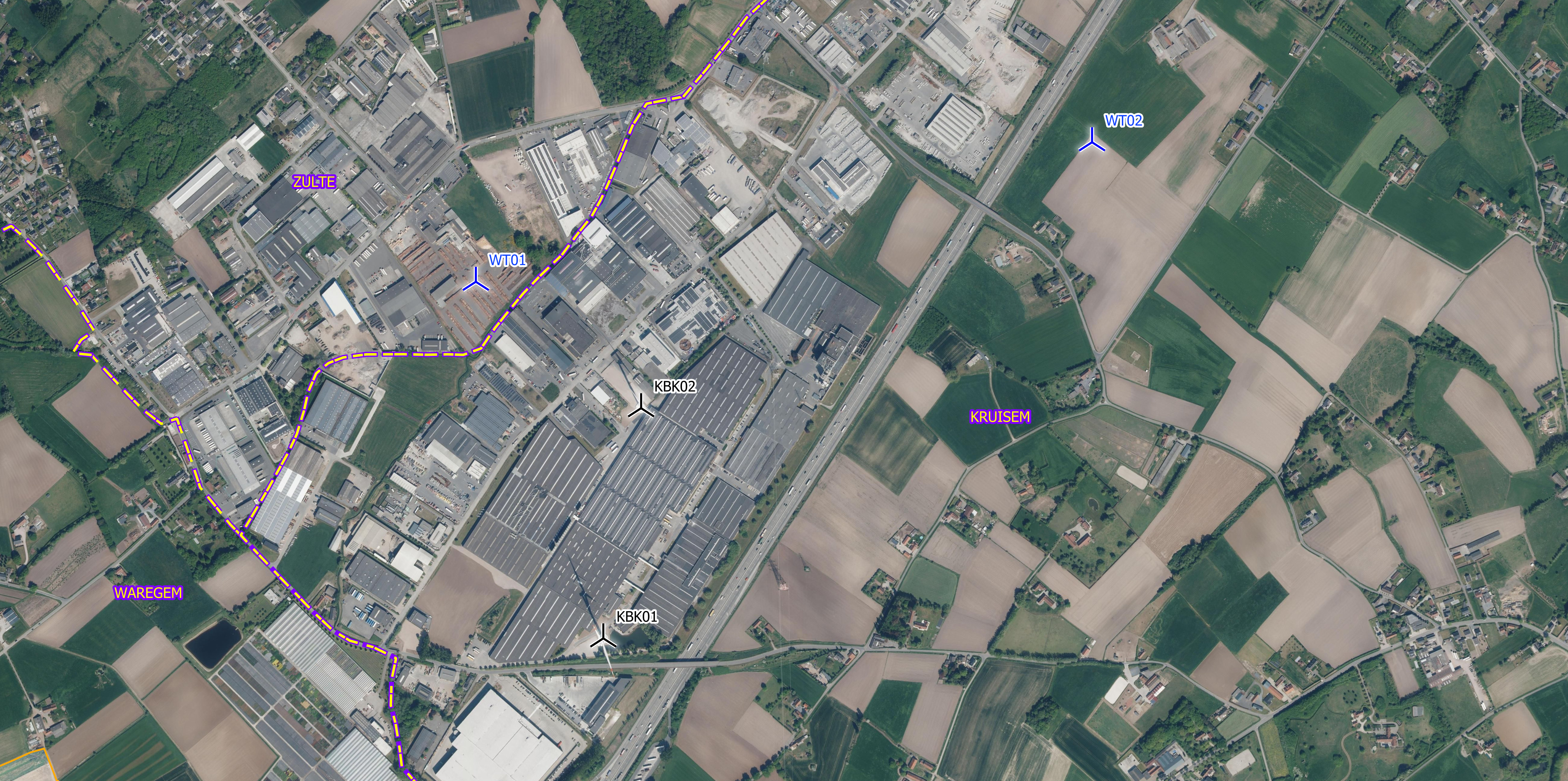 ENGIE wil twee bijkomende windturbines realiseren op en rond het Zaubeek Industrieterrein: één op het industrieterrein in Zulte, één aan de overzijde van de E17 in Kruisem. Dit project sluit aan bij de twee gebouwde windturbines gelegen op de terreinen van Beaulieu International Group te Kruisem.